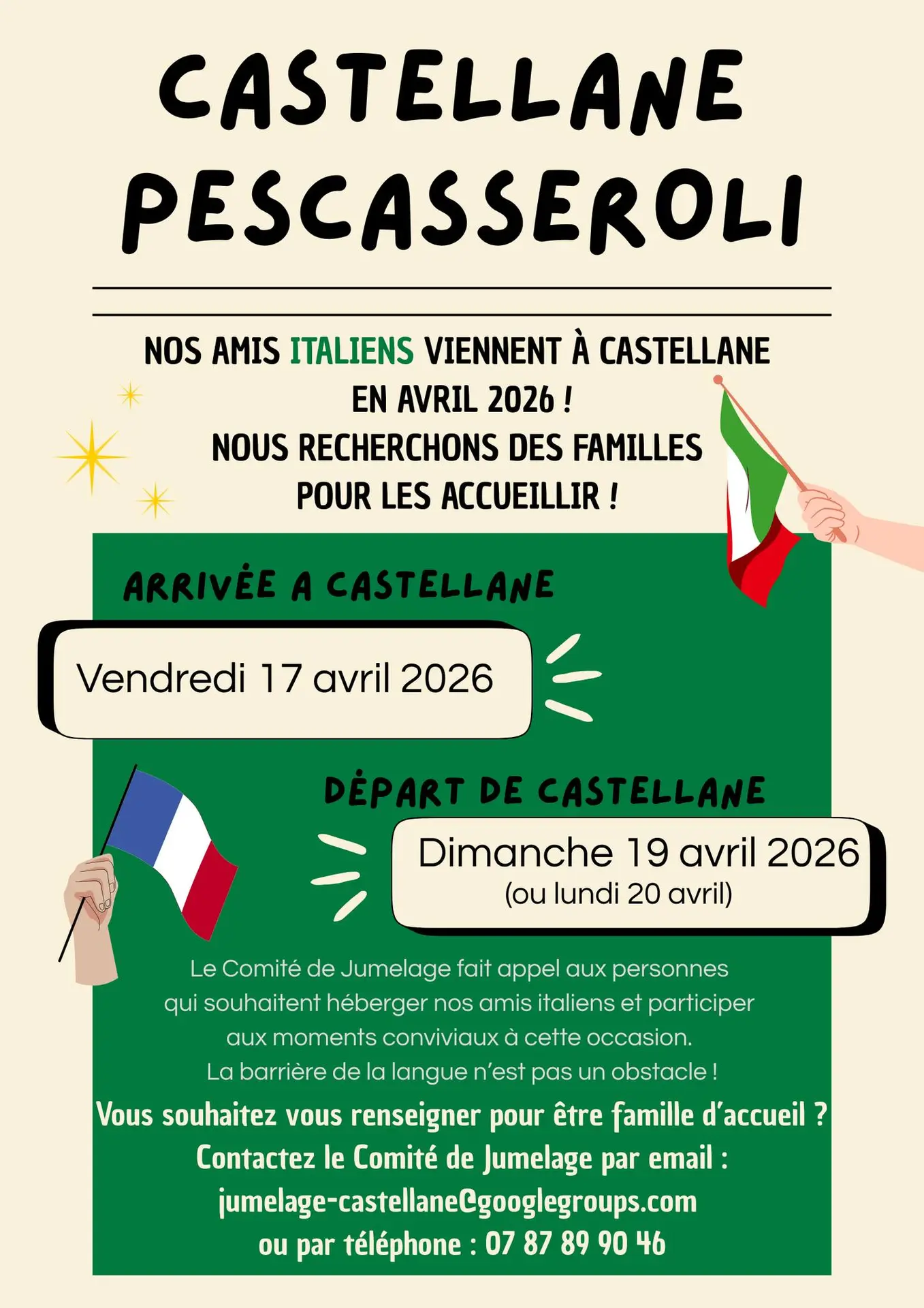 Nos amis italiens viennent à Castellane en avril 2026 ! Nous recherchons des familles pour les accueillir !