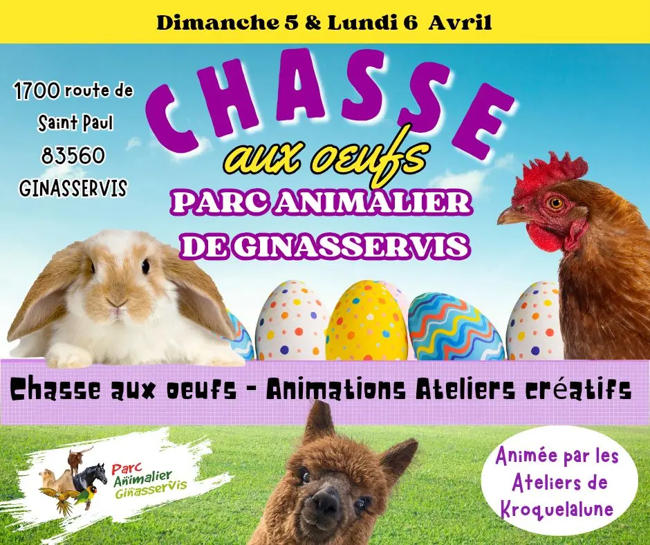 Au programme :Chasse aux œufs pour petits et grands, Animation avec Les Ateliers de Kroquelalune, Délicieuses récompenses chocolatées. Un moment magique à partager en famille