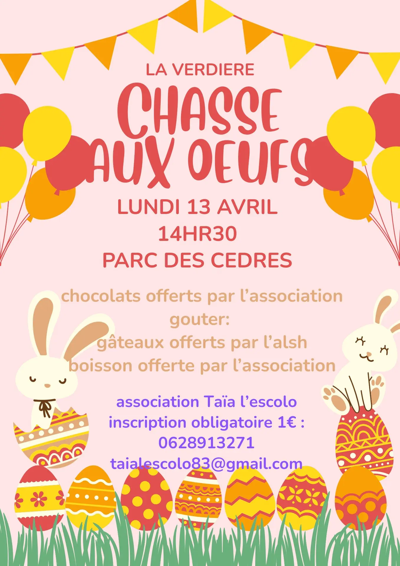 Partez à la recherche des œufs de Pâques dans le parc. Pour le goûter des gâteaux et boissons sont offerts par l'association