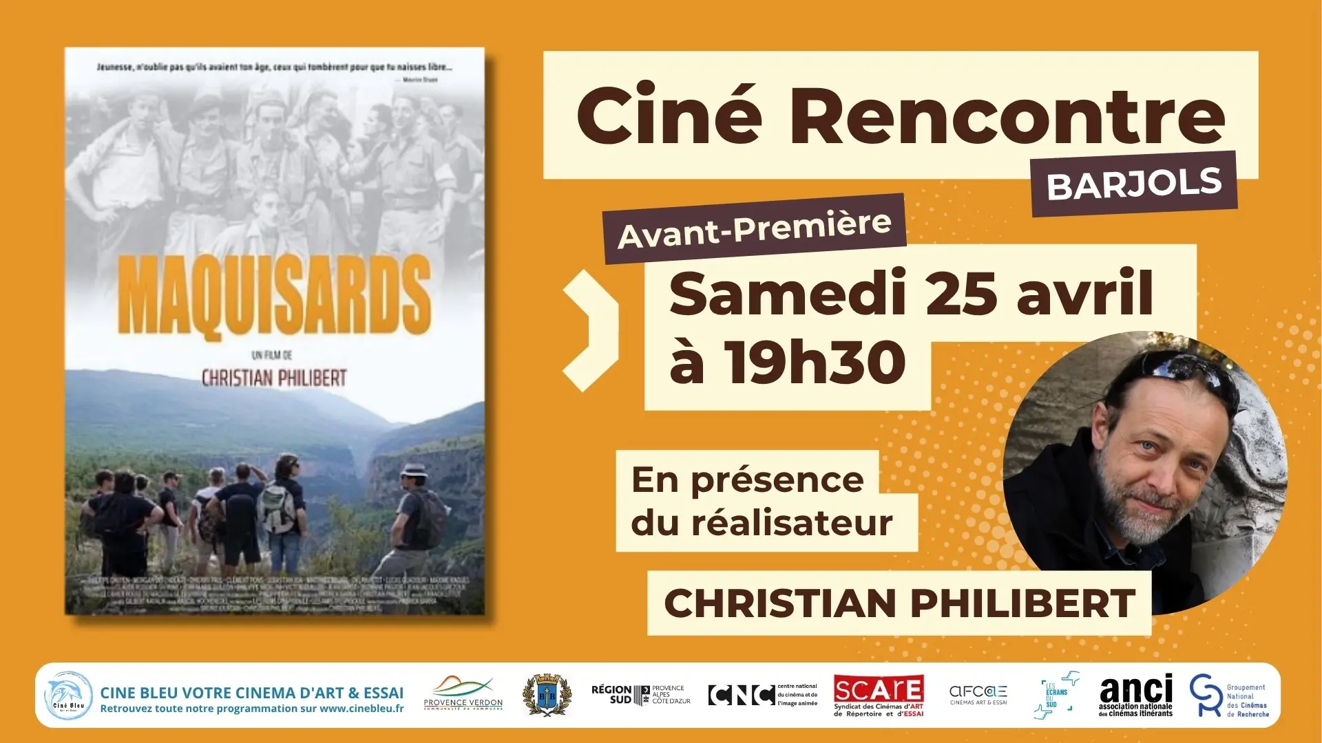 Ciné bleu vous invite à la projection du film "Maquisards", histoire tirée du journal de bord de Gleb Sivirine : le lieutenant Vallier. Projection suivie d’un temps de rencontre avec le réalisateur, Christian Philibert