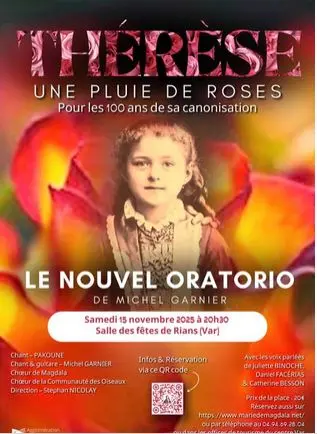 Nous vous invitons à découvrir le tout dernier oratorio en huit tableaux dédié à Sainte Thérèse de Lisieux, écrit et composé par Michel Garnier pour solistes, chœur et voix.