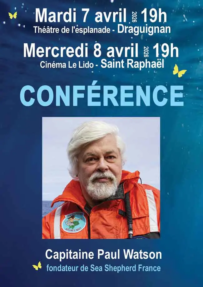 Conférence du Capitaine Paul Watson, fondateur de Sea Shepherd France, qui se tiendra à Draguignan et Saint-Raphaël.