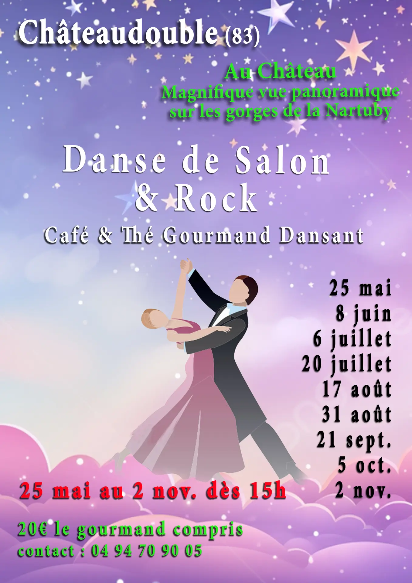 café et thé gourmand dansant au Château, magnifique vue panoramique sur les gorges de la Nartuby