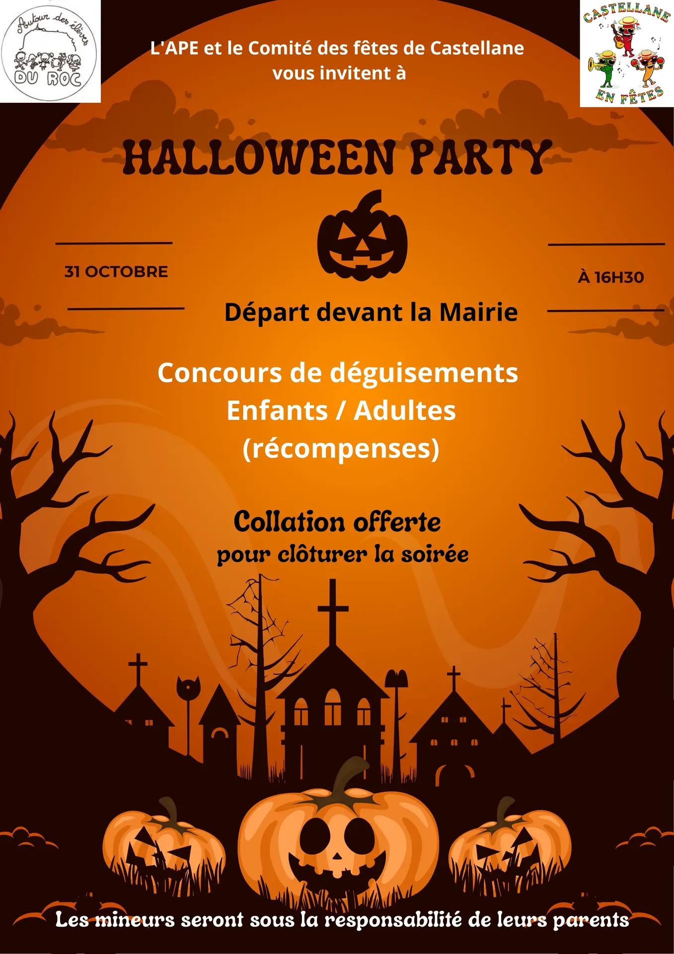 L'association des parents d'élèves et le comité des fêtes de Castellane vous invitent à Halloween Party !