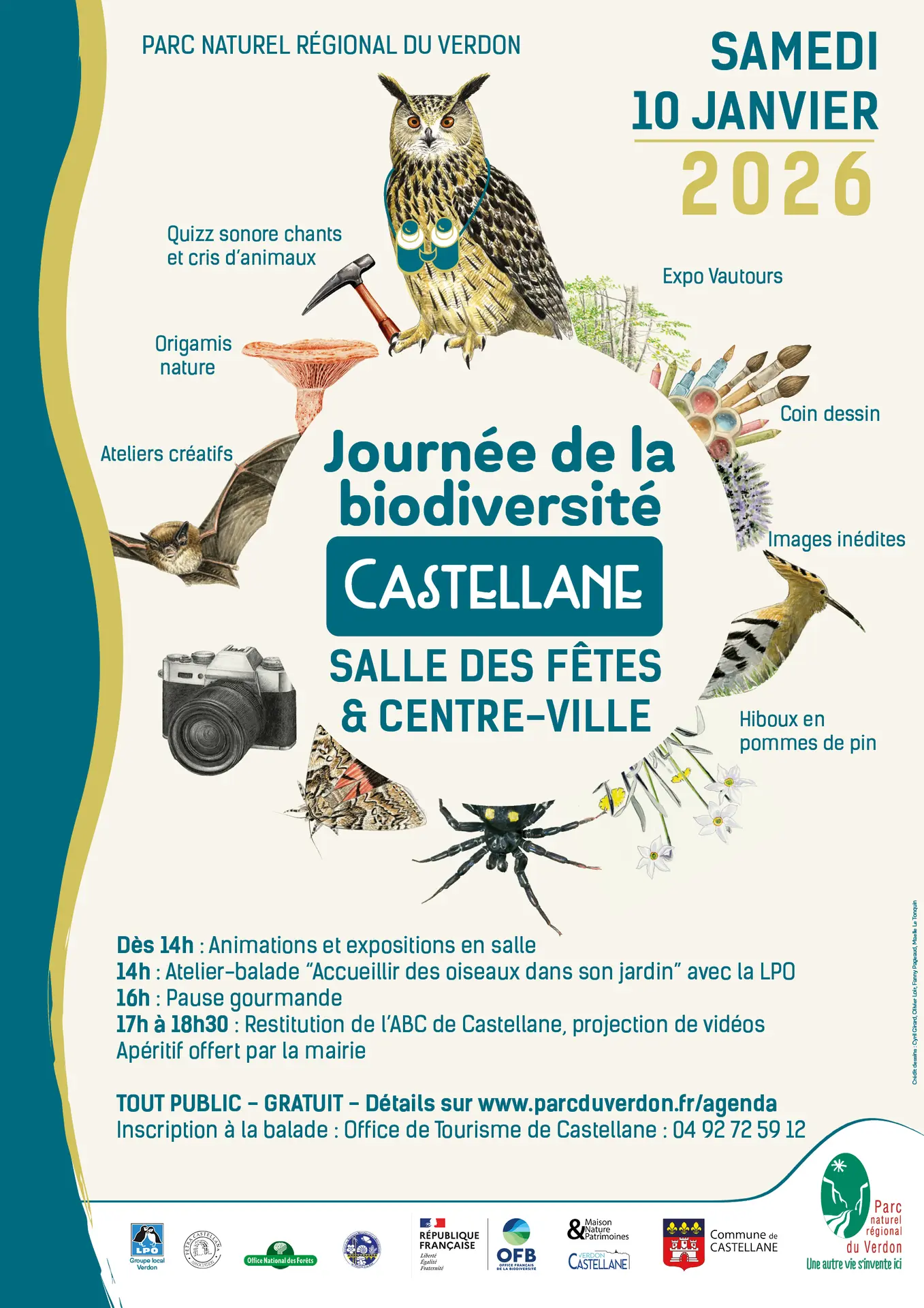 14h – Atelier « Accueillir des oiseaux dans son jardin » animé par le groupe LPO Verdon sous forme d’une balade dans le centre-ville. En cas de mauvais temps : repli dans la salle des fêtes avec présentation de nichoirs et mangeoires.
