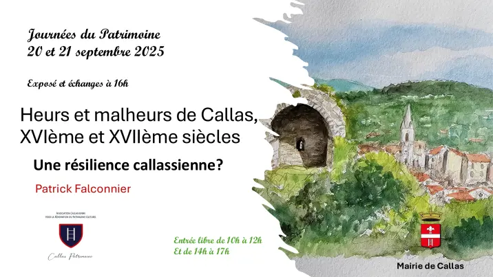Cette année la visite sera complétée par une conférence ayant pour sujet : Heurs et malheurs de Callas, XVIe siècle et XVIIe siècles. Une résilience callassienne ? A 16h. Entrée libre.