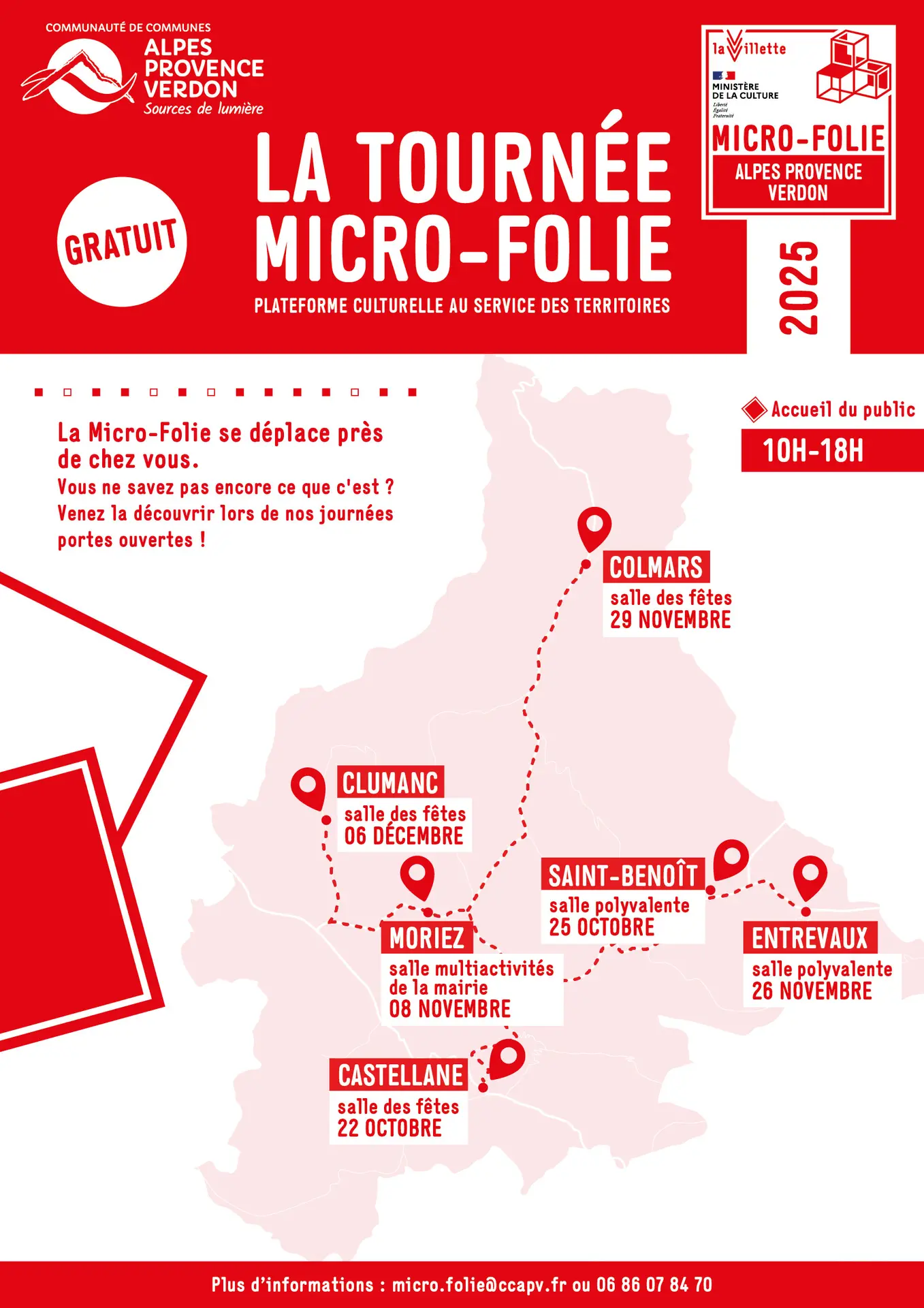 La Micro-Folie mobile Alpes Provence Verdon vous ouvre ses portes pour vous faire découvrir ses plus grands chefs d’œuvre ! 6 dates, 6 lieux différents au plus près de chez vous.