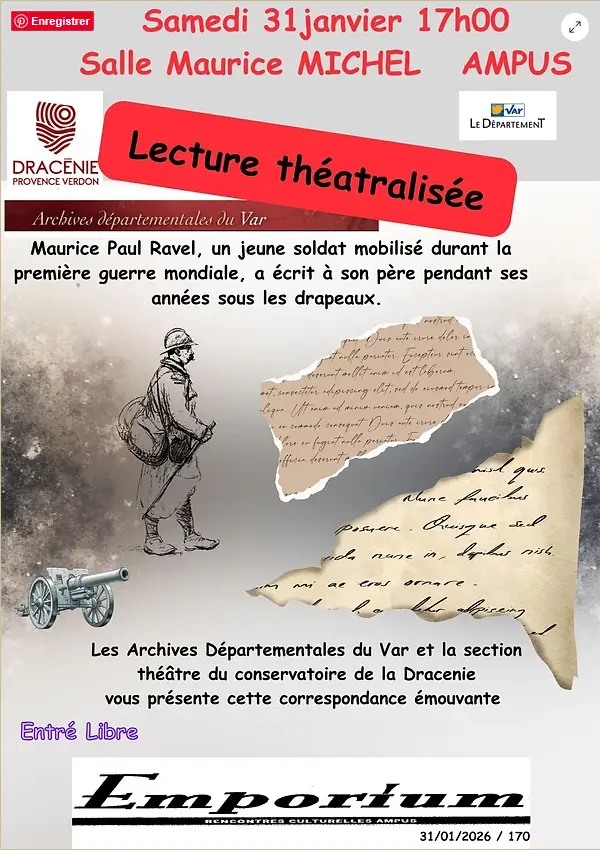 Les archives départementale du Var et la section théâtre du conservatoire de la Dracenie vous présente cette correspondance émouvante.