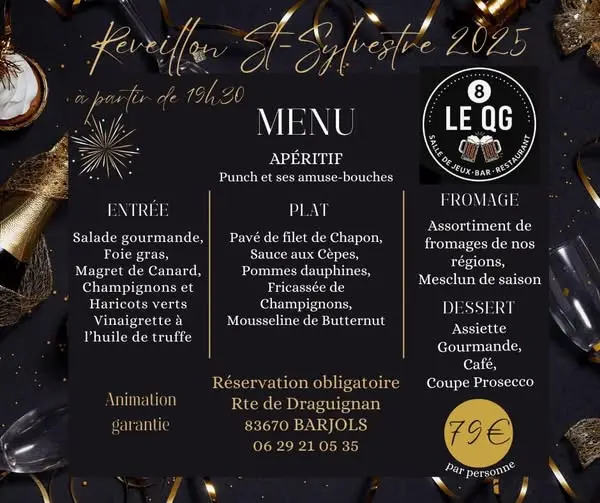 Fêtez le passage à l'année 2026 au QG, ambiance garantie. Le compte à rebours se fait ensemble, les verres levés, et les bons souvenirs commencent maintenant. Réservations obligatoires.