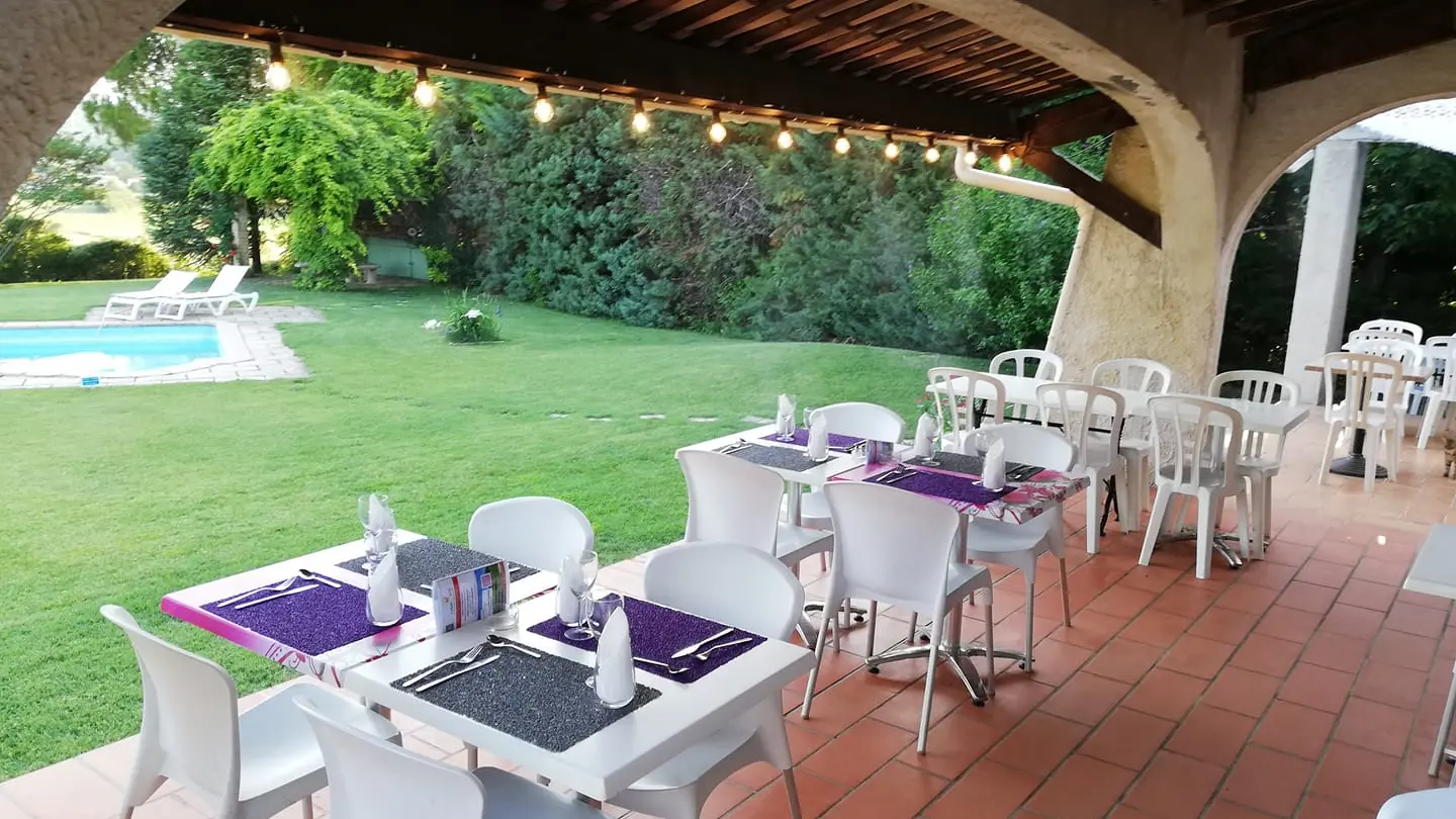 Restaurant moderne avec un cadre stylisé, une grande terrasse sur parc, face au village sans vis à vis. La cuisine est faite maison.